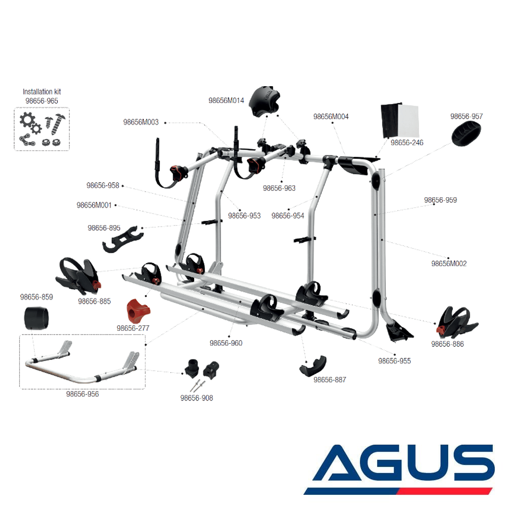 Üst Braketler Aracın arkasındaki takviyeli noktalara sabitlenir ve ortasında plastik desteklerle tamamlanır. Araç alt kısmında kanca kullanılmaz ve tampona yaslanmaz.
