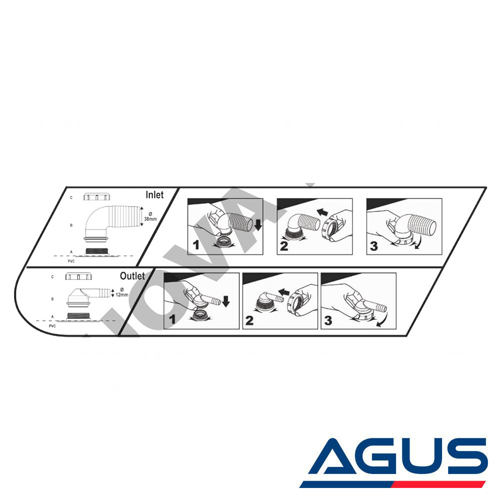 Maksimum sızdırmazlık için hareketli diş sıkma halkalarına Ø 38 mm su giriş bağlantısına ve Ø 12 mm çıkışa sahiptir.