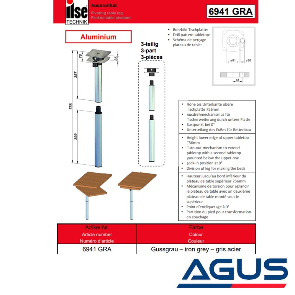 Karavanlar için Döner Tip Masa Ayağı